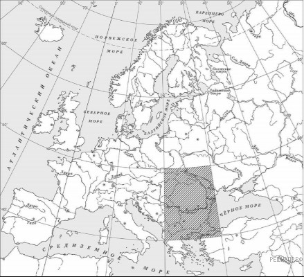 Заштрихуйте на контурной карте один четырёхугольник, образованный градусной сеткой, в котором находится Косово поле, где в 1389 г. состоялась сражение сербского и турецкого войск.