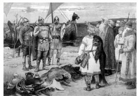 «Сказали руси чудь, славяне, кривичи и весь: „Земля наша велика и обильна, а порядка в ней нет. Приходите княжить и владеть нами“. И избрались трое братьев со своими родами, и взяли с собой всю русь, и пришли прежде всего к славянам. И поставили город Ладогу. И сел старший, Рюрик, в Ладоге, а другой — Синеус, — на Белом озере, а третий, Трувор, — в Изборске. И от тех варягов прозвалась Русская земля. Через два года умерли Синеус и брат его Трувор. И принял всю власть один Рюрик и пришел к Ильменю, и поставил город над Волховом, и назвал его Новгород, и сел тут княжить, и стал раздавать мужам своим волости и города ставить — тому Полоцк, этому Ростов, другому Белоозеро. Варяги в этих городах — находники, а коренные жители в Новгороде — славяне, в Полоцке — кривичи, в Ростове — меря, в Белоозере — весь, в Муроме — мурома, и над теми всеми властвовал Рюрик».